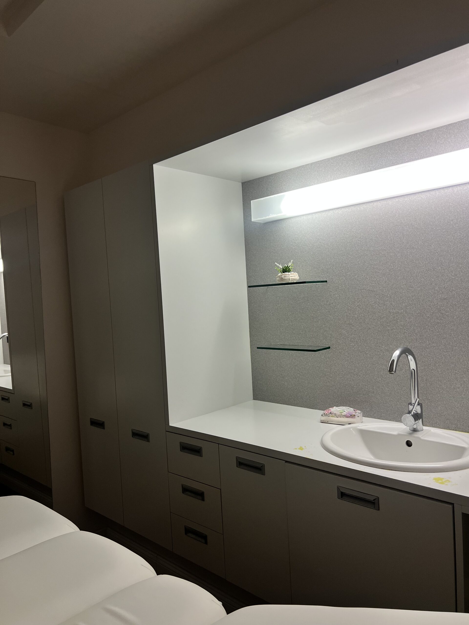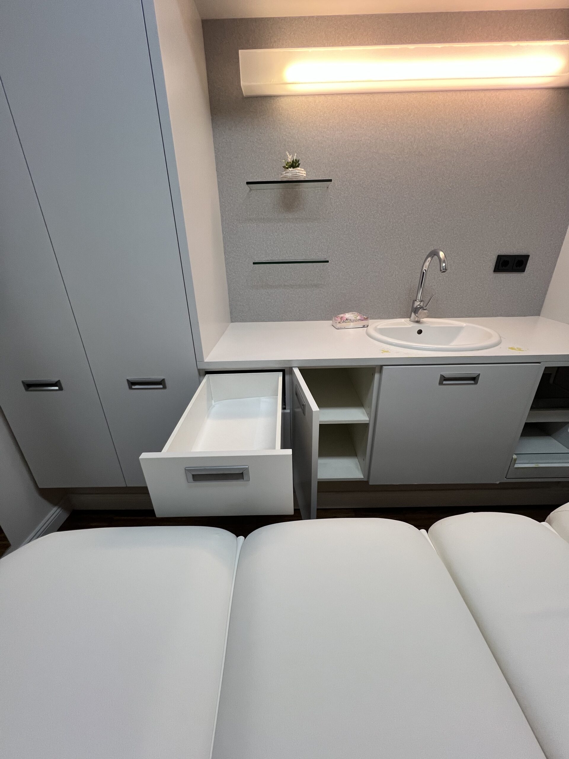 • Saját kézmosó, tárolószekrény, kényelmes kezelőágy
